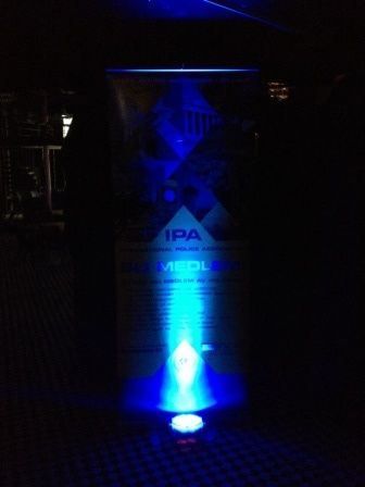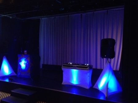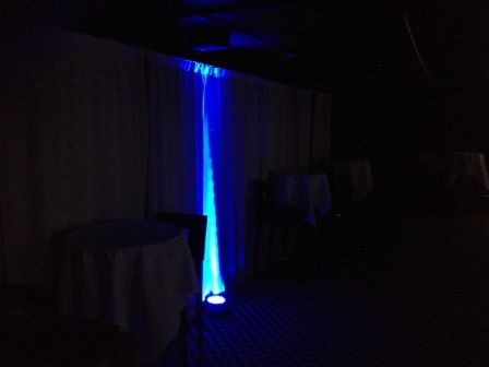 Vi satte opp 2 stk høyttalere med wrapz og dekor lys under wrapz, samt lysdekor langs vegger i lokalet. Alt av dekorlys ble selvfølgelig satt i politifargen blått.