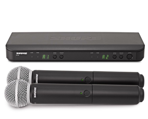 The BLX288/SM58 Wireless Dual Vocal System with two SM58, the industry-standard, highly versatile cardioid dynamic vocal microphone, tailored to deliver warm and clear vocal reproduction combines simple setup and an intuitive interface for performance you can trust in.