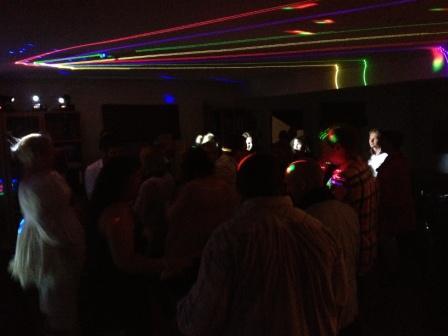 Her ser dere hvordan en privatfest kan utarte seg - vi gratulerte jubilanten med å rigge opp discotekanlegg for opptil 500 personer i stua hans..... samt laser, discolys, og LED uplight effekter på utsiden av huset. Han ble en meget glad jubilant. DJ levert av Partydjs.no