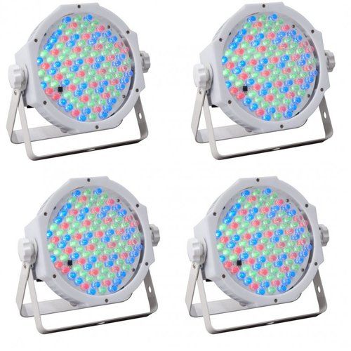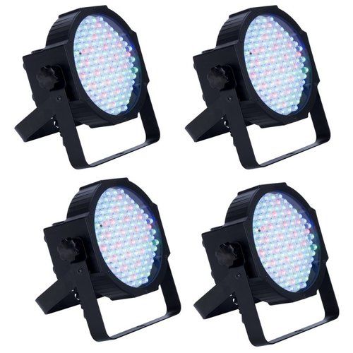 Enkel scene lys bestående av 4 stk RGB LED lamper med fot kontroller. Kan også brukes som discolys mot dansegulv eller lign. Leveres i transportbag. Enkelt å sette opp og tar liten plass.