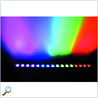 LED DMX lys effekt med 3 hovedfarger (rød, grønn og blå), med fargeveksler og DMX kontroll.